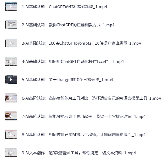 智能 AI 训练营自媒体必看课程,夸克网盘课程。这门专为自媒体从业者设计的AI课程,助你系统掌握人工智能在内容创作与运营中的实战应用。课程从AI基础认知起步,详解ChatGPT的42种功能场景,手把手教你高效调教模型、编写优质提示词,甚至自动化处理Excel等办公任务。