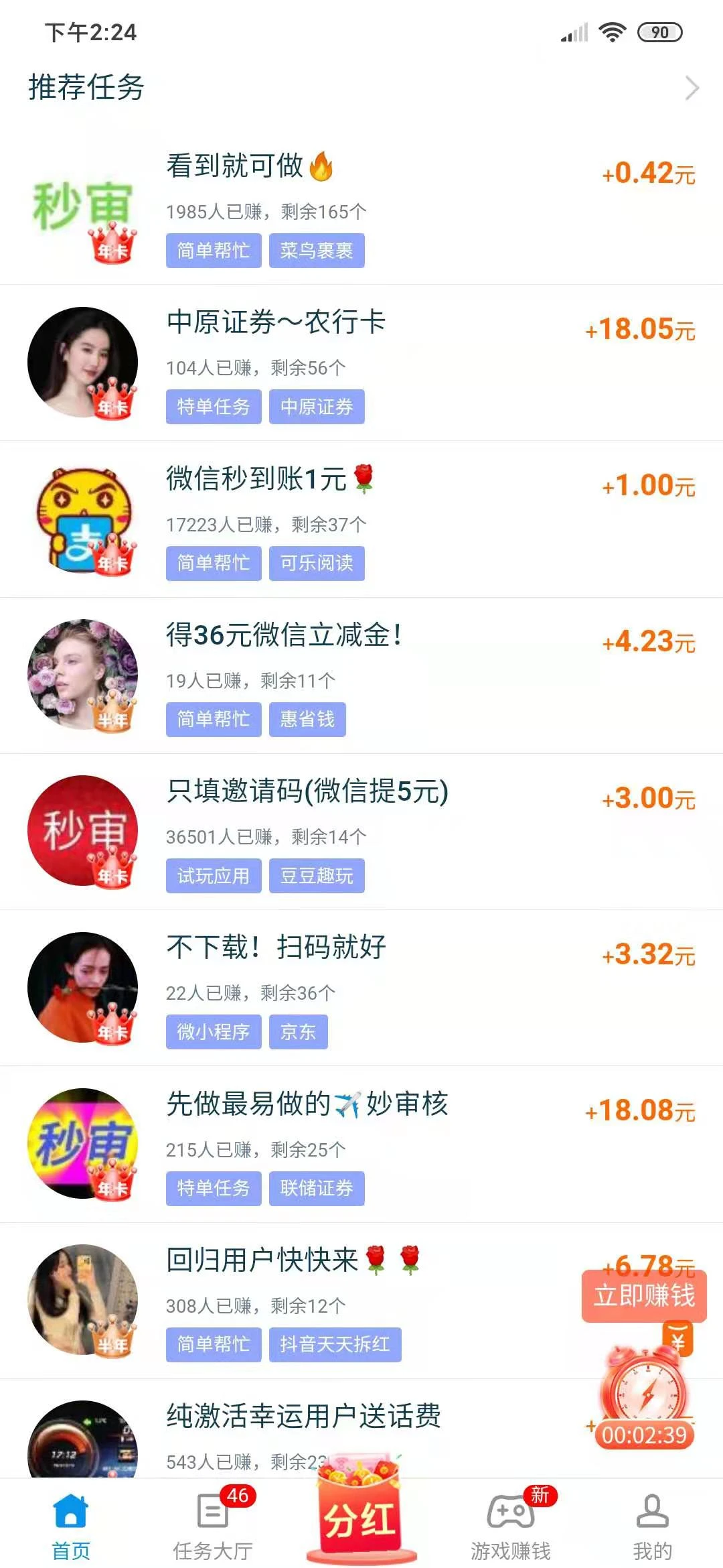 任务赚钱,1元即提现!