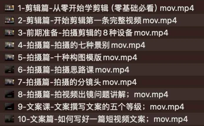 从零开始入门短视频的拍摄剪辑,夸克网盘课程。《从零开始入门短视频的拍摄剪辑》是一套专为初学者设计的系统课程,旨在帮助学员快速掌握短视频制作的核心技能。