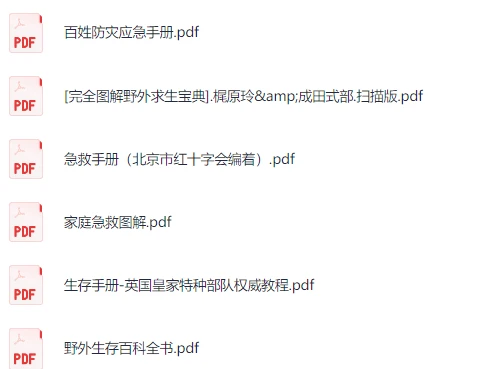 一些野外求生手册集合,包括完全图解野外求生宝典、急救手册、野外生存百科全书、生存手册、百姓防灾应急手册和家庭急救图解等,阿里云盘和夸克网盘资源,有需要的可以保存学习。