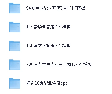 精选学术论文毕业答辩 PPT模版,夸克网盘资源下载。这份资源汇集了近千套高质量PPT模板,覆盖从开题到毕业答辩的各类学术演示需求,满足不同风格与主题的个性化选择。资源分为四大类:94套开题答辩模板、119套毕业答辩模板、130套学术答辩模板,以及200套大学生精选毕业答辩PPT,其中还包括10款精选顶级模板。各种风格应有尽有,从创意蓝色、简约盐系马卡龙,到可爱萌系小清新、红色大气立体,再到绿色文具主题和复古蓝色,都可轻松匹配个人或院系风格。