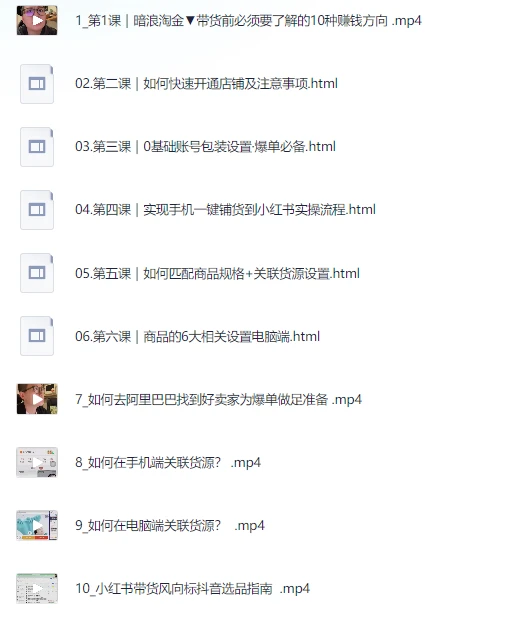 小Red书带货42天训练营 2.0版,宝妈+自由职+上班族+大学生,提高副业收入的大红利项目,夸克网盘课程。本训练营专为宝妈、自由职业者、上班族和大学生打造,帮助学员提升副业收入。课程内容涵盖账号包装、店铺注册与运营、产品匹配与货源关联,详细讲解从电脑端到手机端开播操作及数据管理。针对选品,课程提供抖音、淘宝及小红书多平台数据分析方法和实操指导。除此之外,训练营还包括带货笔记创作、爆款封面与标题设计,结合社群分享和案例解,展示快速发货与批量管理技巧。课程延伸至虚拟项目上架、自动发货及手作类目解析,帮助学员全方位掌握直播带货、笔记营销和产品转化的核心策略,实现高效变现。