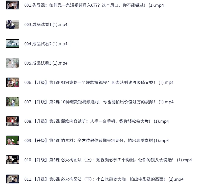 爆火全网的手机短视频变现课,0基础教你拍摄剪辑涨粉运营变现,用一部手机挣钱,本课程由40节视频组成,覆盖短视频从策划、拍摄、剪辑到运营、变现的全流程。通过系统化的讲解和实战案例演示,帮助零基础学员掌握短视频制作要领,实现月入数万的目标。