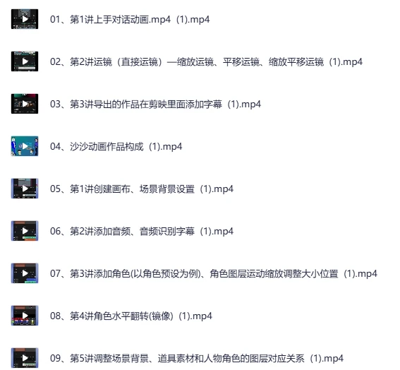沙沙动画全套课程,教你一部手机零基础制作动画视频,本课程系统整理了沙沙动画的完整教学视频,涵盖从零基础入门到进阶应用的全流程。学习者将掌握画布创建、角色搭建、运镜技巧、配音处理、特效制作、AI生成素材应用等多维度技能,适合希望用手机快速制作动画视频的创作者。