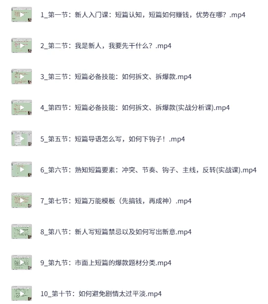 女频短篇写作变现系统课,快速掌握市场热门套路,实现从写作小白到变现达人的蜕变,本套系统课由18节核心视频和可编辑实操手册组成,围绕短篇小说的认知、技能拆解、实战模板和进阶变现体系展开。学员将掌握从新人入门到五万阅读的成神之路,快速驾驭市场热门套路,实现从写作小白到变现达人的蜕变。