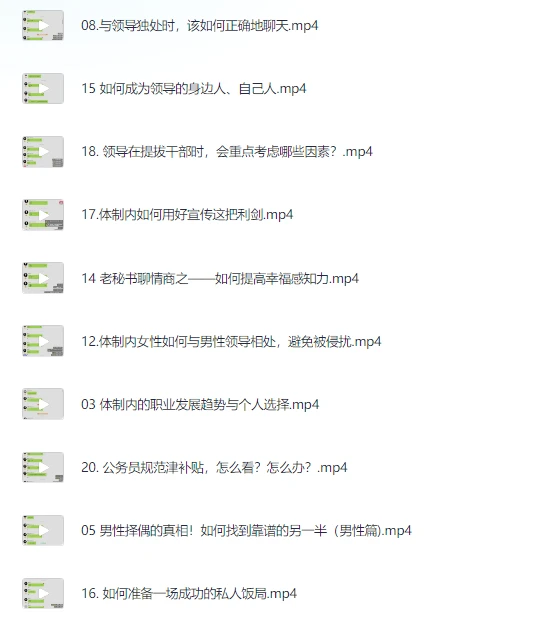 本课程是一个专注于提升体制内职场人士情商和职业能力的在线课程。这个课程涵盖了多个与职场情商相关的重要主题,旨在帮助学员在体制内环境中提升个人能力,增强职场竞争力。