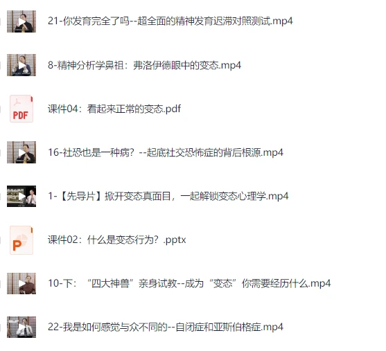 《变态心理学20讲》视频课程适用于各个年龄段的心理学爱好者和专业人士。无论是想要了解自己心理状况的普通人,还是希望提高专业技能的心理咨询师,都能从本课程中获得启发和帮助。